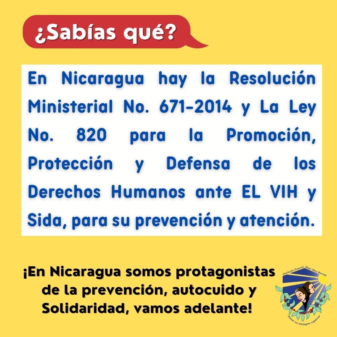 En Nicaragua existe la Resolución Ministerial No. 671-2014 y La Ley No. 820 para la Promoción, Protección y Defensa de los Derechos Humanos ante el VIH-SIDA, para su prevención y atención.